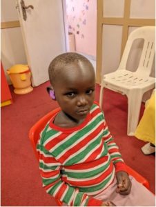 Mugisha came to the clinic as a two-year-old and was diagnosed with severe bilateral hearing loss. He had no speech at all. We obtained hearing